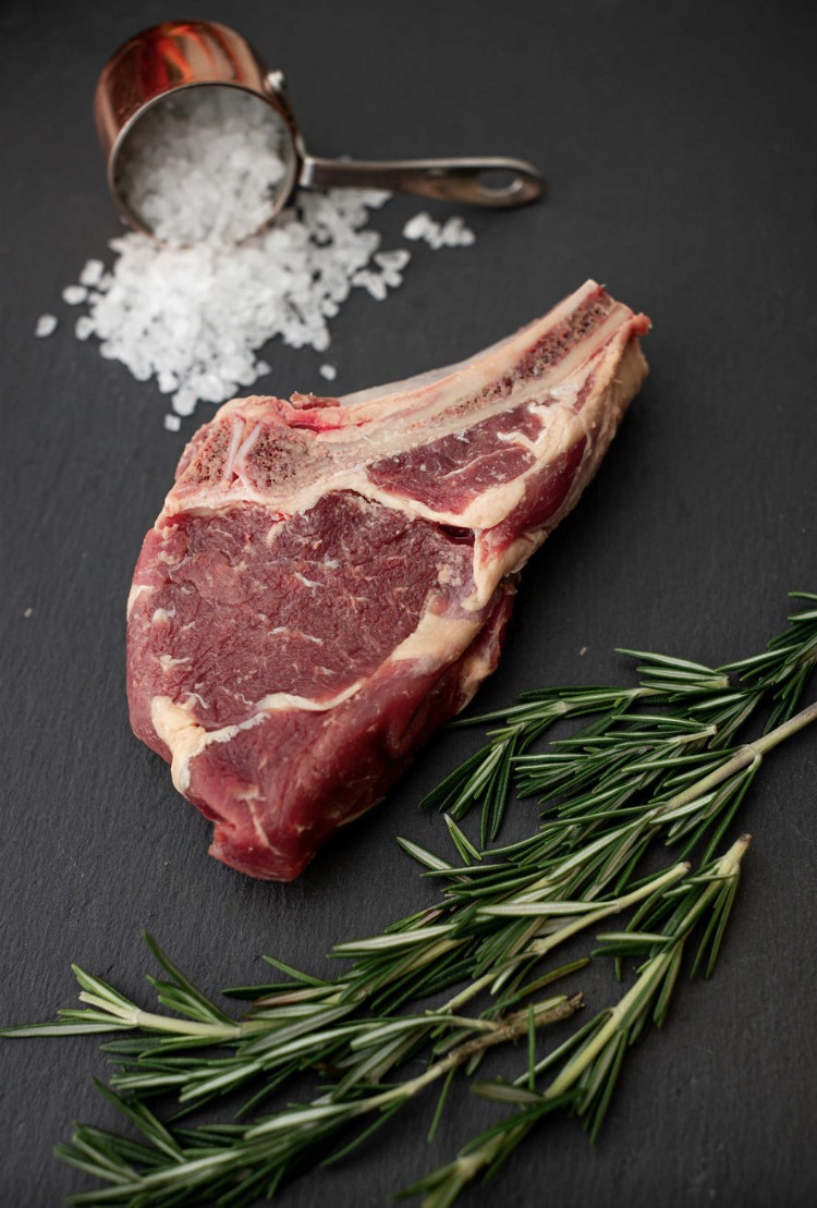 Raised on open pastures, our Angus cross cattle are primarily grass-fed and carefully finished. We dry-age every cut for 19+ days to develop deep, rich flavor.